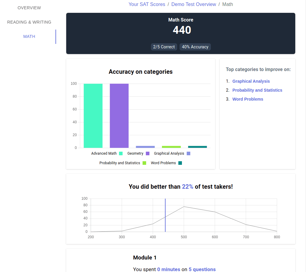 Access an insightful breakdown of your SAT Math performance with our interactive dashboard.